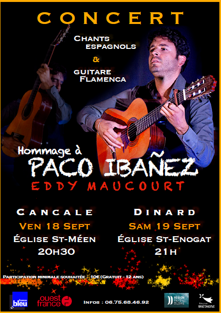 Laissez-vous emporter dans un voyage poétique et poignant grâce à la voix puissante et la guitare virtuose d’Eddy Maucourt qui chantera les plus belles chansons de Paco Ibañez au sein de la magnifique acoustique de l'église Saint-Enogat. Une expérience à ne pas rater.