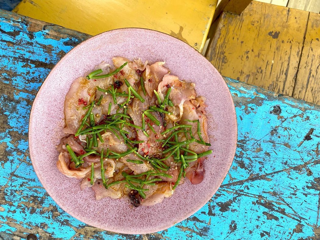 A cross between a hut and a restaurant, Kalypso celebrates local produce and moments together in a heavenly setting on the Plage de Saint-Sieu beach.