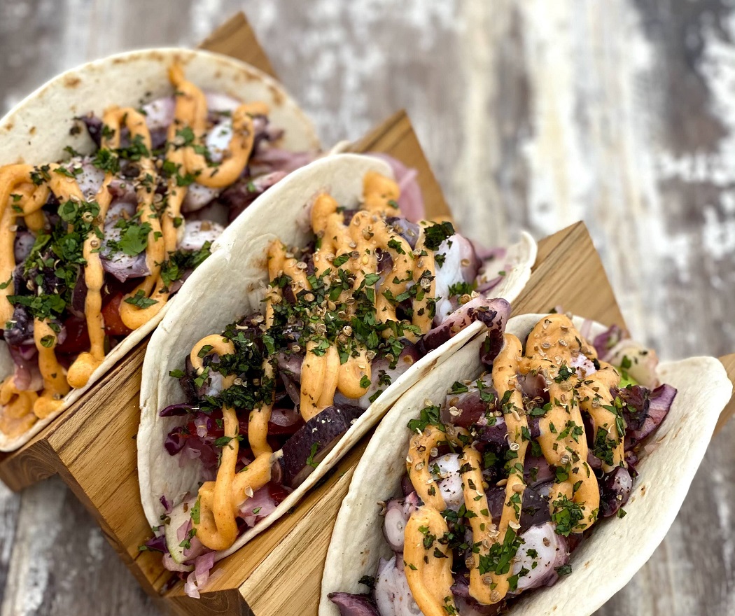Bordered by the sand and soothed by the gentle sound of the waves, at Kalypso you can eat around large, colourful wooden tables in a special place that looks like an old fisherman’s hut.