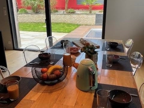 ★ ★ ★ ★ ★This large house will win you over with its unoverlooked location. The contemporary decor is tasteful and of high quality. It comprises a large living room with a dining area and lounge separated by a large open-plan kitchen.