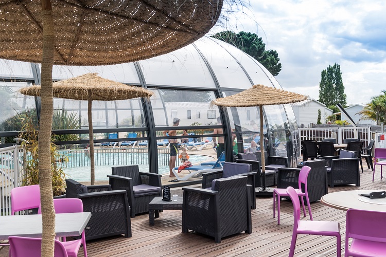 Espace aquatique couvert et chauffé, pataugeoire, toboggans. Snack, service de vente à emporter.